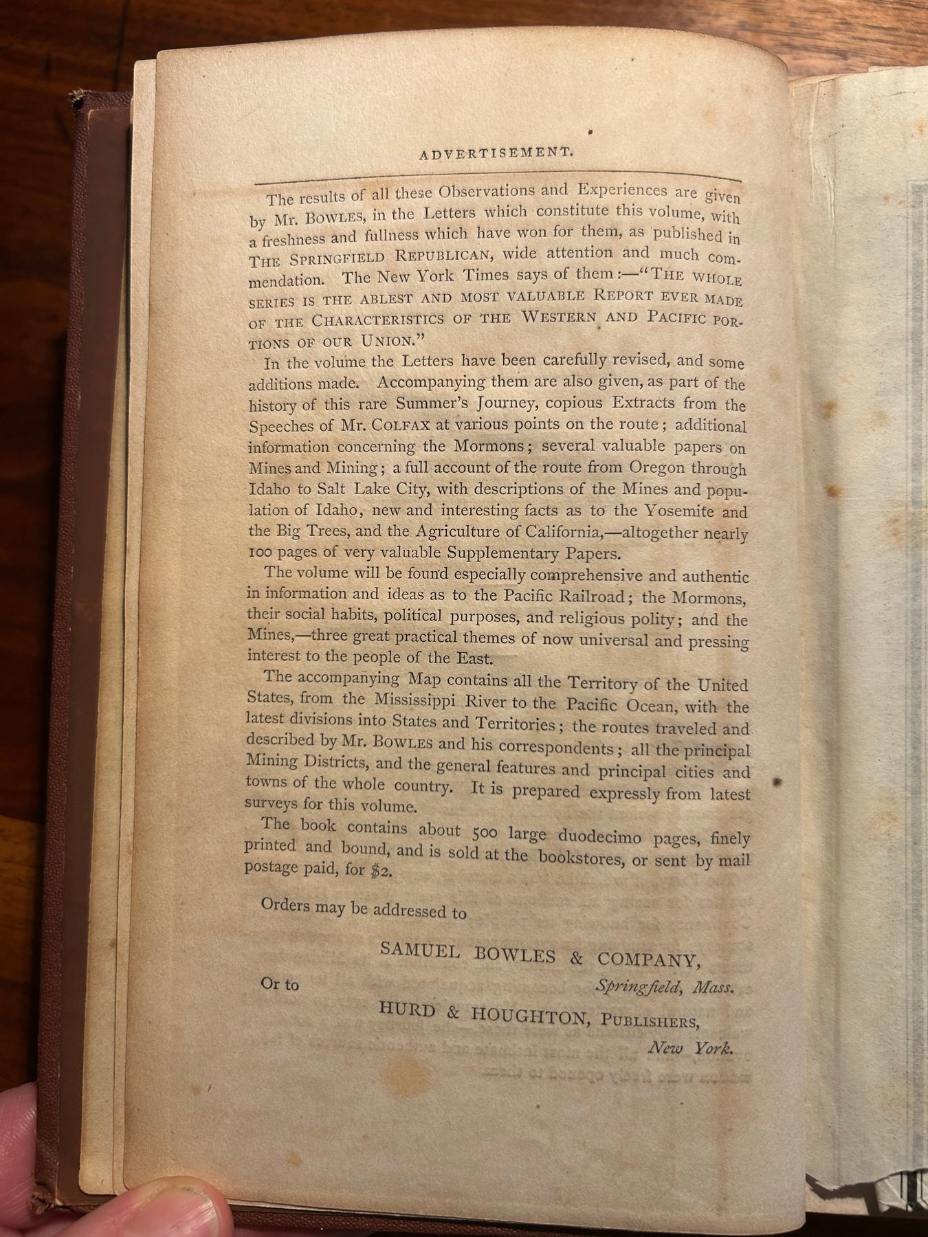 By Samuel Bowles, Samuel Bowles & Company, Springfield, Massachusetts, 1865,